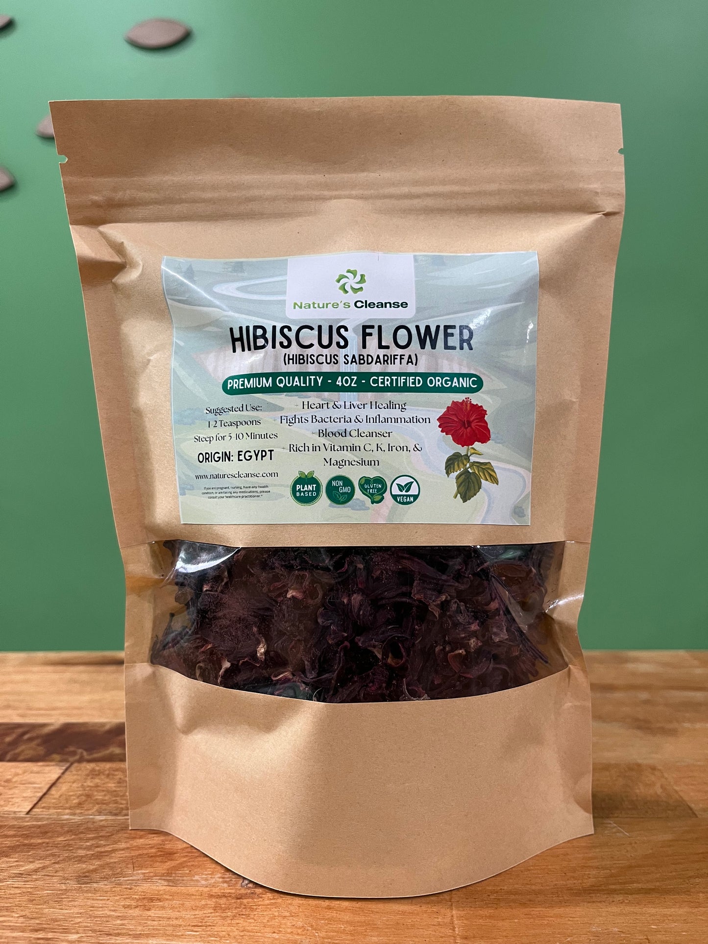 Hibiscus flower, from the Hibiscus sabdariffa plant, is a vibrant red flower used dried in teas, jams, and culinary dishes. It has a tart, cranberry-like flavor and is rich in antioxidants, vitamin C, and anthocyanins. Traditionally used to support heart health, lower blood pressure, and aid digestion, it’s popular in herbal blends like "zinger" teas.