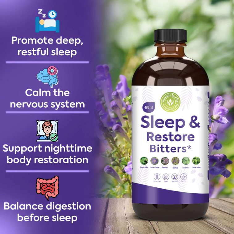 Sleep & Restore Bitters is a thoughtfully crafted herbal blend designed to calm your mind, relax your body, and restore natural sleep patterns. Deep Relaxation: Eases stress and promotes a sense of calm. Quiet the Mind: Reduces mental chatter, helping you unwind. Improved Sleep Quality: Alleviates insomnia and anxiety.