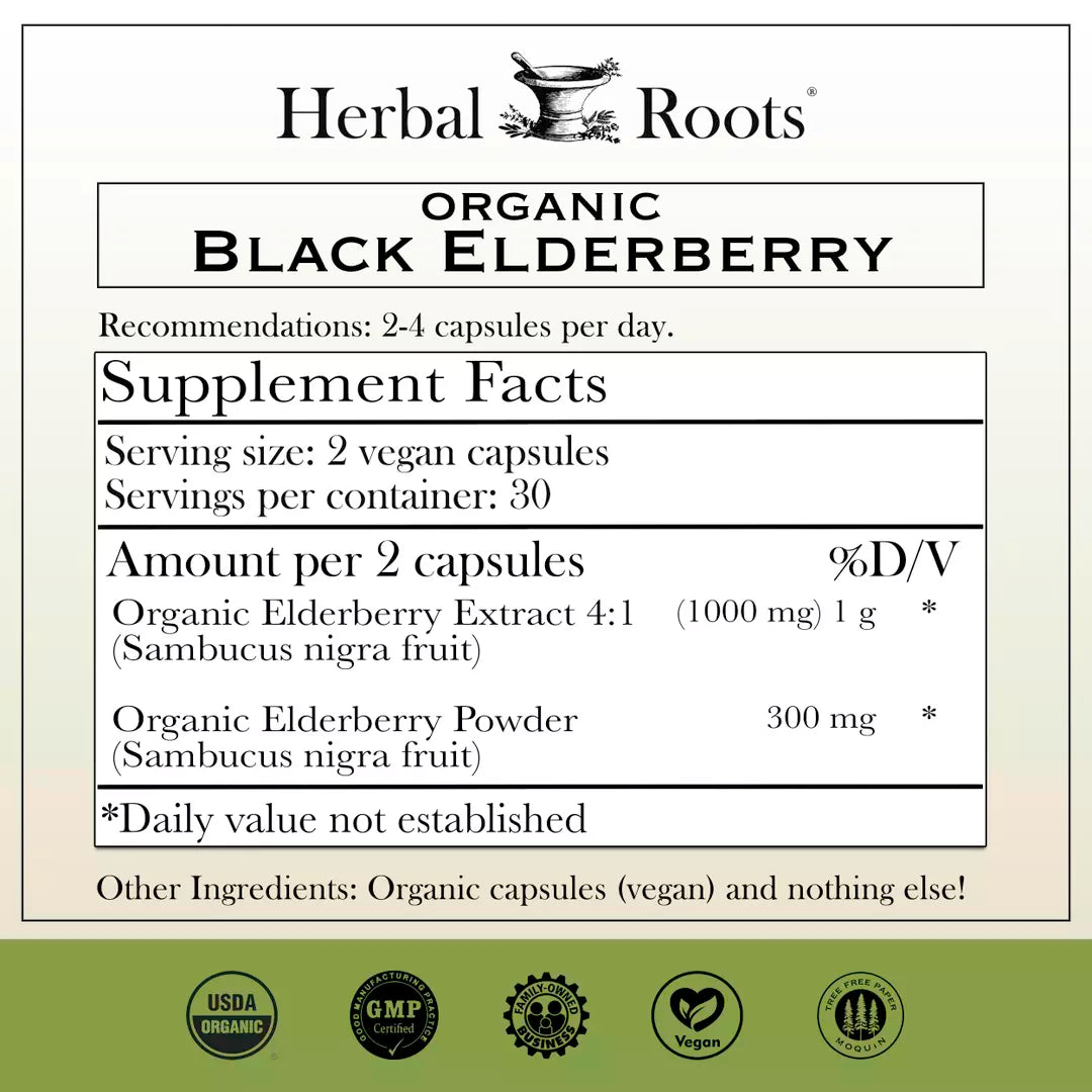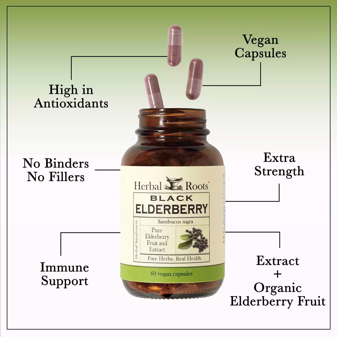 Herbal Roots Elderberry is a powerful formula that equals 4,300mg fresh elderberry per serving.