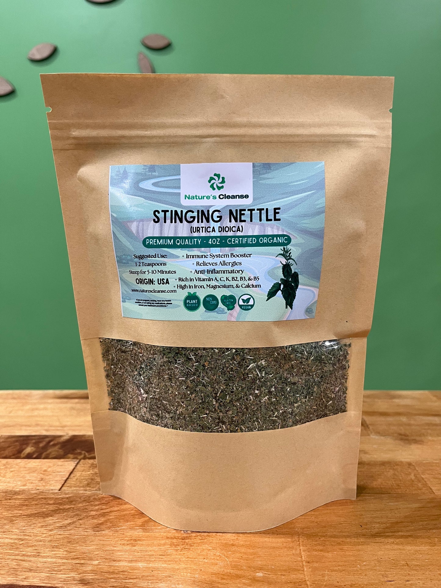 DISCLAIMER: Statements and claims here have not been evaluated by the Food and Drug Administration. These products are not intended to diagnose, treat, cure or prevent any disease. Please always consult your health care provider if you are taking any medications or have any medical condition. Individual results may vary.Recharge your wellness with our stinging nettle leaf, sourced from the finest Urtica dioica plants. Grown in pristine fields without pesticides or chemicals, our whole dried nettle leaves deliver exceptional quality: lush, vibrant, and brimming with nature’s potency. A revered herb across cultures, stinging nettle is packed with minerals, chlorophyll, and antihistamines, supporting allergy relief, energy, and detoxification. Its earthy flavor and anti-inflammatory properties make it a versatile daily tonic. Perfect for teas, infusions, or culinary blends, our stinging nettle leaf offers pure, untainted vitality straight from the earth to you.