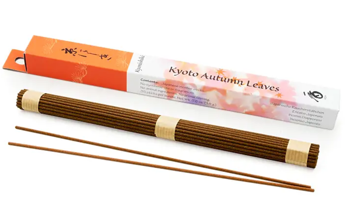 Developed over 30 years ago to capture the radiant autumn charm of Kyoto’s Arashiyama district, Shoyeido’s Kyoto Autumn Leaves Incense is a timeless icon in the world of incense. Its poetic blend of high-quality, natural cinnamon and sandalwood, sourced without synthetic additives or chemicals, perfectly embodies the crisp beauty and tranquil spirit of a fall day.