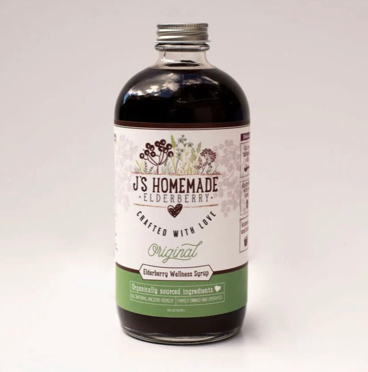Ingredients: Water, Honey, Elderberries*, Rose Hips*, Cinnamon*, Astragalus Root*, Lemon Juice* *Organic