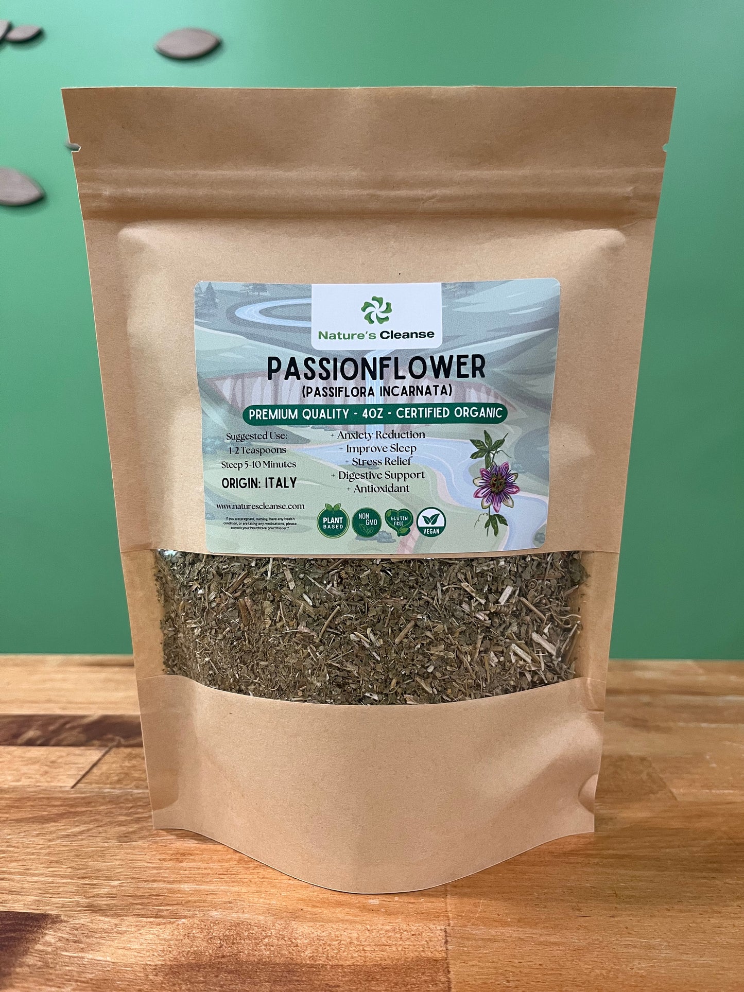Passionflower (Passiflora incarnata) is an herb derived from the aerial parts of the plant, known for its calming effects. Used in teas, tinctures, or capsules, it helps reduce anxiety, promote sleep, and ease nervous tension due to its flavonoids and alkaloids. It has a mild, earthy flavor.