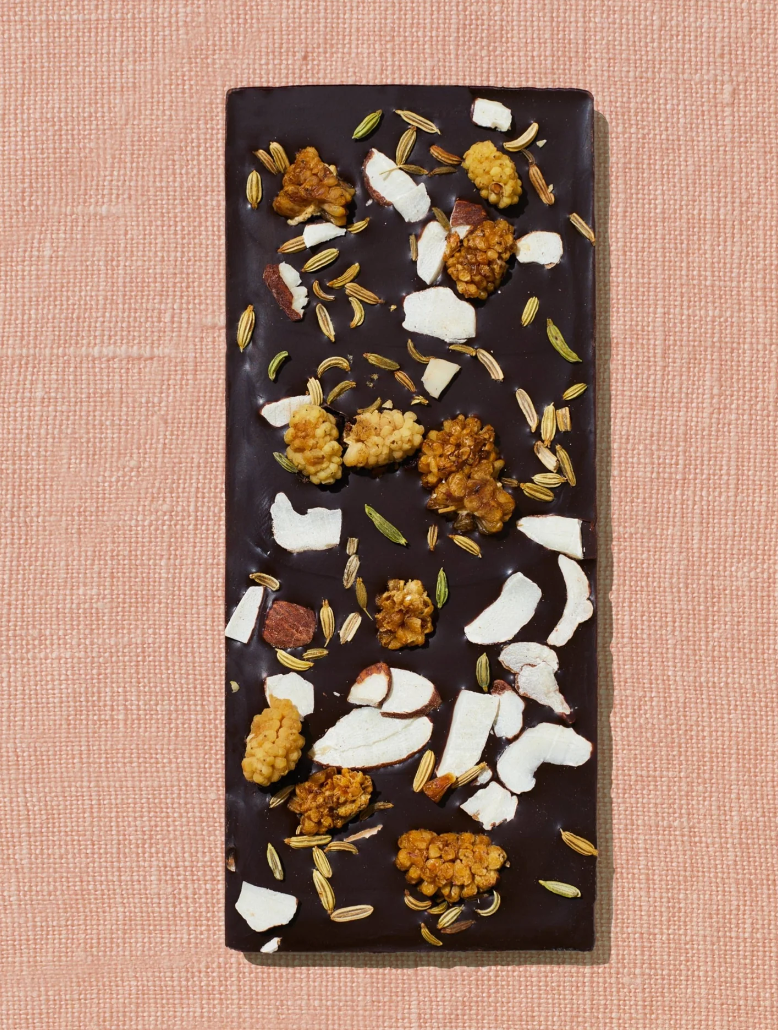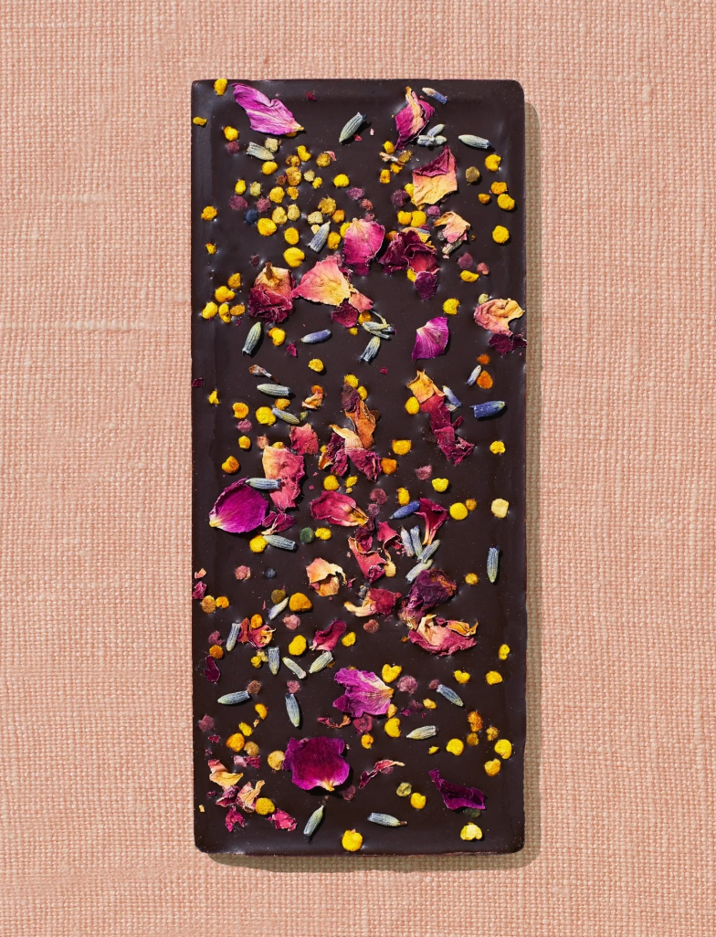 Fruits, nuts, florals, and cacaos are the foundation of this chocolate.