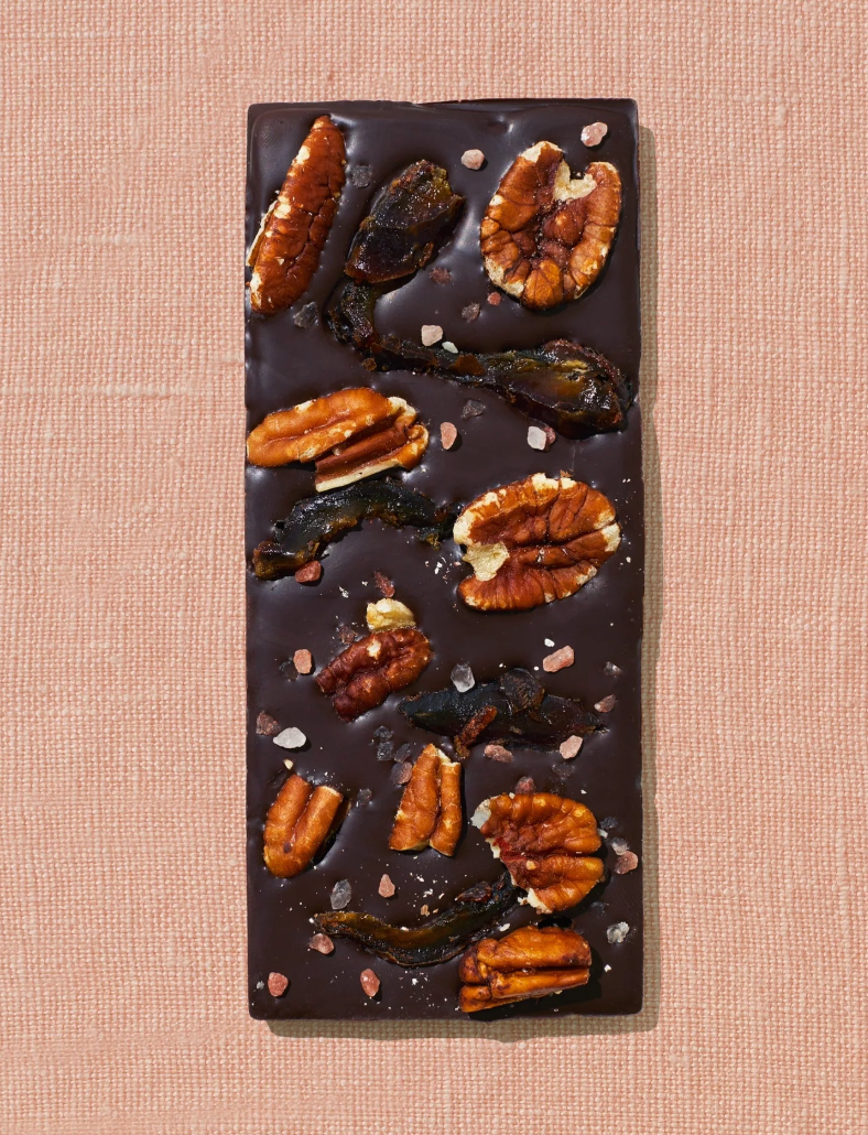 Our chocolate is sweetened with organic dates, without refined sugar or artificial sweeteners.